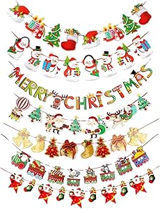 7種類のガーランドが入ったボリューム満点の飾りセットです。壁の数ヶ所に飾るだけで、部屋の雰囲気がガラッと変わります。クリスマスツリーにアレンジして飾るのもおすすめ。サンタや雪だるまなどのかわいい絵柄がそろっているので、子どももきっと大喜びです。
