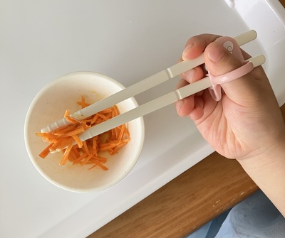 3つのリングで指を正しい位置に固定できる他、箸先がギザギザしているため、豆や麺など滑りやすい食材もしっかり掴めました。かわいさと使いやすさのおかげで、娘のやる気アップにつながった、わが家の救世主です。