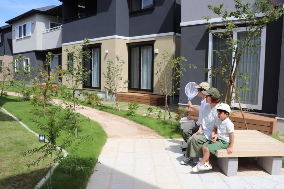 SATONOWAでは、地域交流のきっかけになる、「フットパス」と呼ばれる歩行者専用の遊歩道や、自由広場の「わせだ広場」を整備。その他にも、年齢性別問わず気軽に利用できる「コミュニティハウス」を設置するなど、街全体の環境を整えることにより、個々の家の環境価値を高めています。