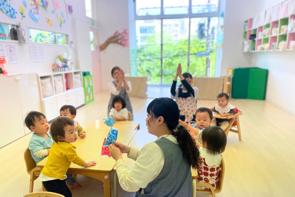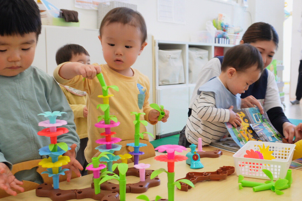 peekaboo保育園では、「未来ある子どもたちが大人になったら役立つことを育める場所」という理念のもと、子どもたちの個性を尊重し、非認知能力(人間力)を高める保育を行っています。活動の土台に“キッズコーチング®(発達心理学や気質心理学)”を導入し、子どもたち一人ひとりに合わせた保育を実践。大人が教えるのではなく、子どもたちが遊びを通して自ら学ぶことを大切にし、日々の声掛けなども工夫が凝らされています。