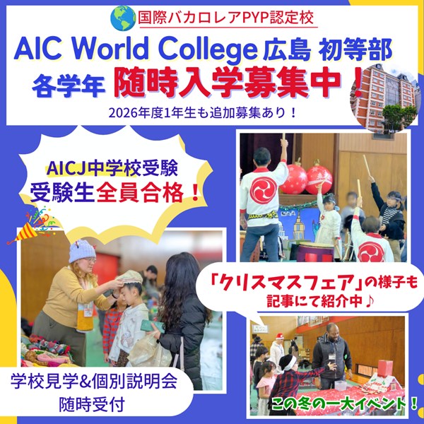「AIC World College 広島 初等部」随時入学募集中!この冬…